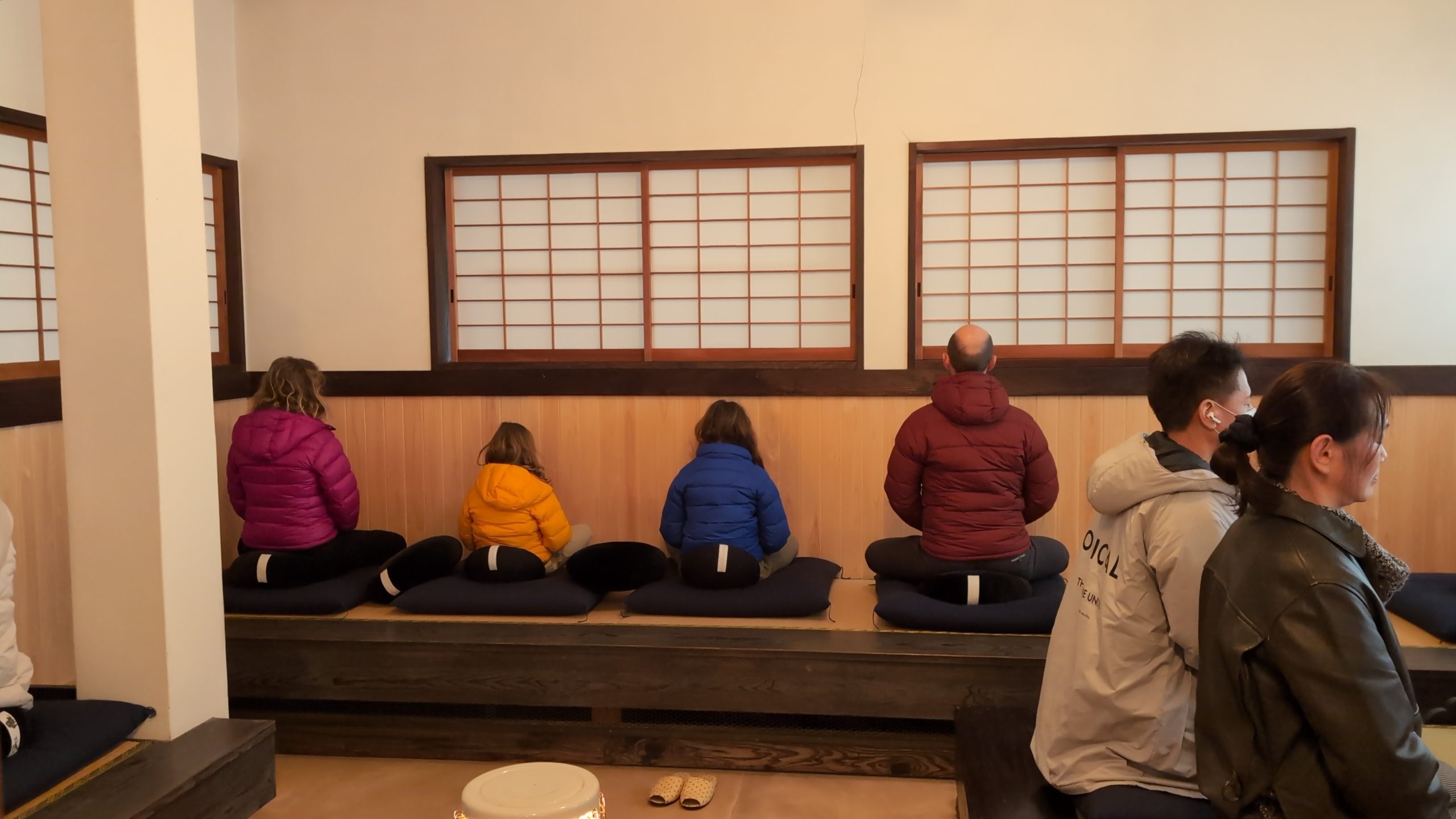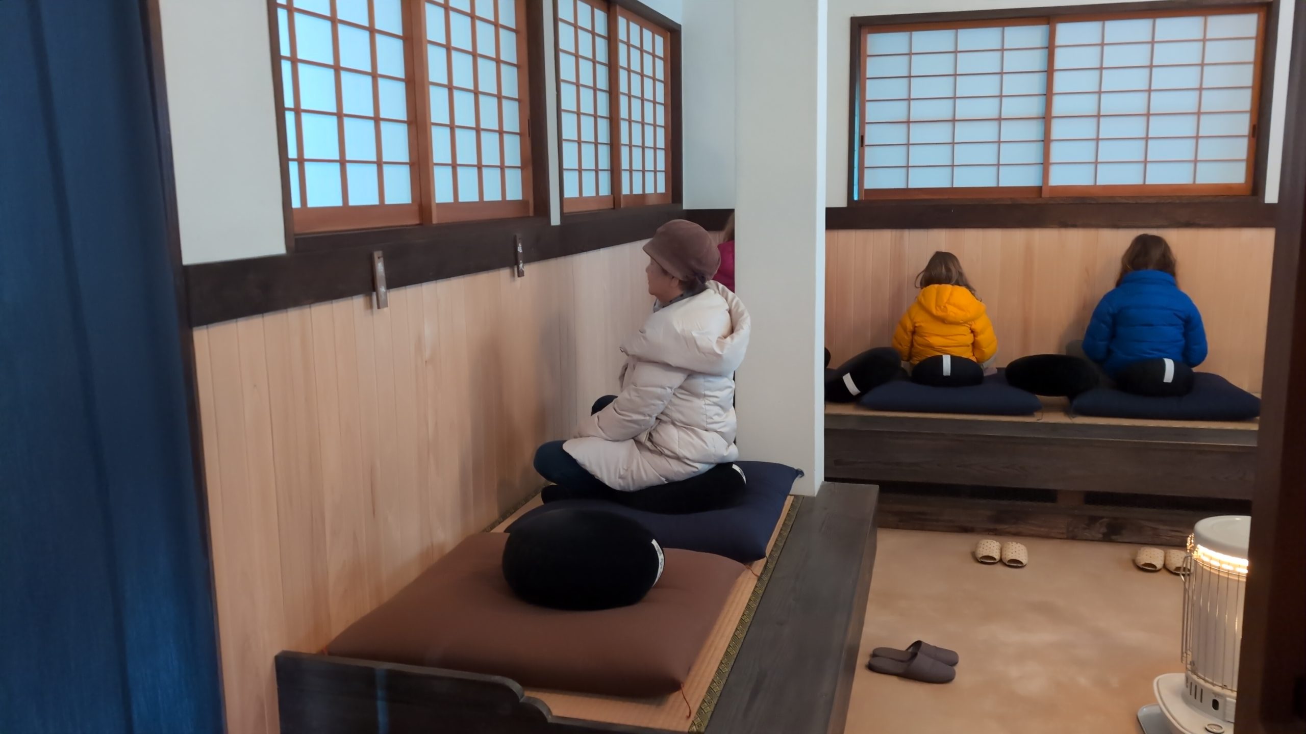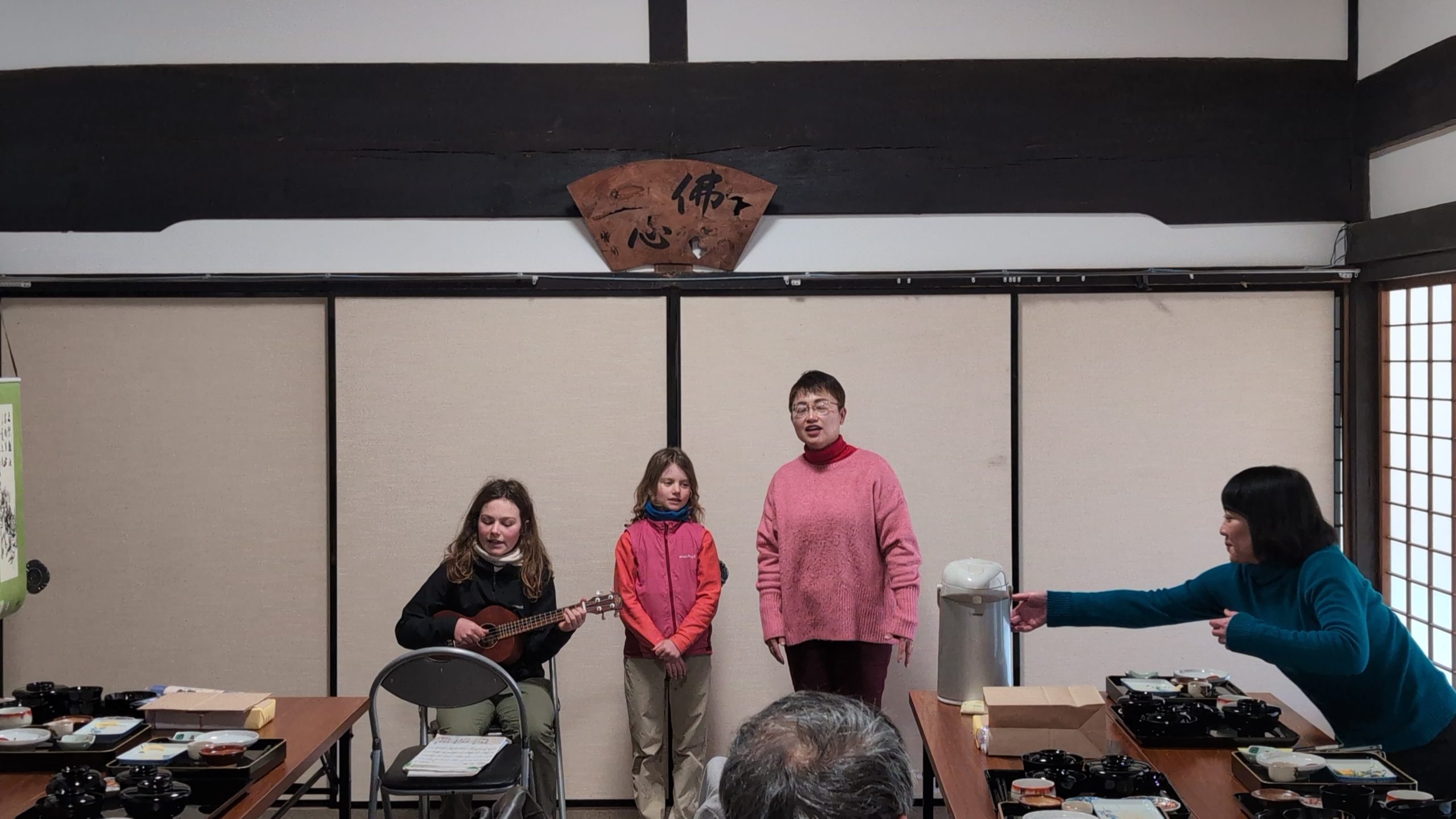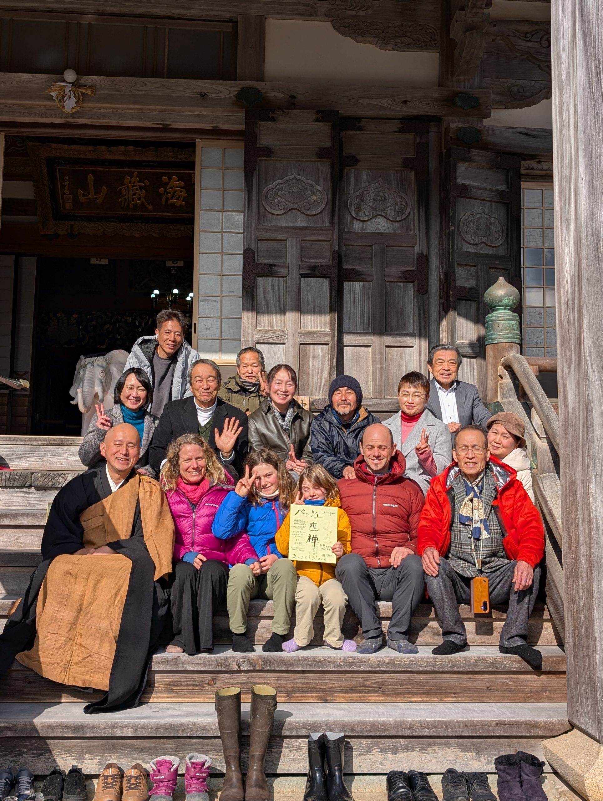 地元浜田市の広瀬ご夫妻の主催で、スイス🇨🇭人で世界中を家族で旅して回っておられるパッシュファミリーと一緒に有志の方々が集まり参禅されました。以前からご縁のある広島の「ぞうさんカフェ」の植田さんご夫妻が通訳などサポートをして下さいました。坐禅と精進料理の後には、娘のナイラちゃんとフィビーちゃんが、日本の歌を披露してくれました。
